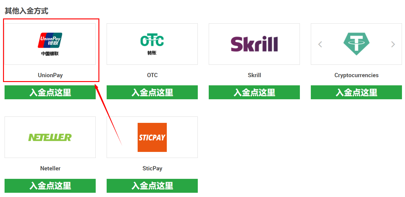 第二:在顶部导航栏选择“便捷入金”;在主页面选择入金方式(银联)